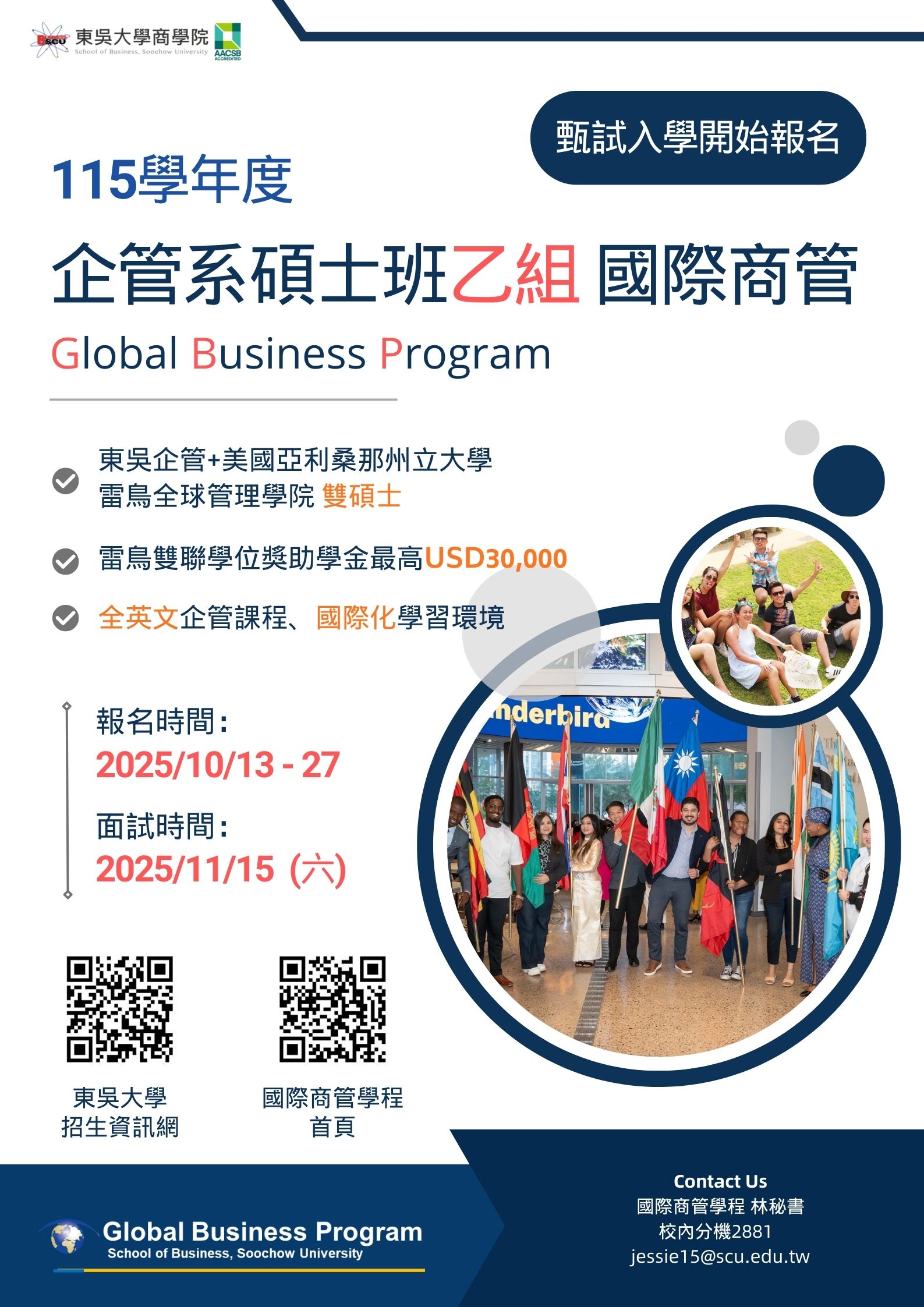 東吳大學115學年度企管系碩士班乙組 (國際商管)